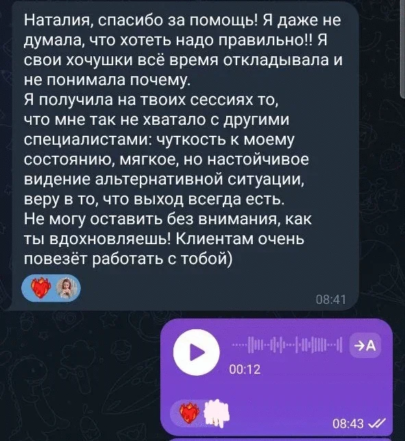 Меня зовут Наталия Патрахина — практикующий психолог, помогающий людям находить свой путь к гармонии и счастью.