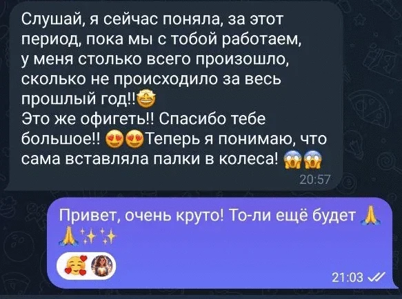 Мой путь в психологию начался ещё в детстве, когда я мечтала помогать людям. Профессиональный спорт, работа, личные трансформации — всё это привело меня к осознанию, что психология — моё истинное призвание.